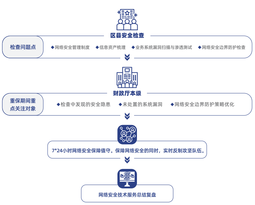 财政系统网络安全专项检查服务。包含安全管理情况检查、安全配置核查、漏洞扫描、终端防护检查、渗透测试等