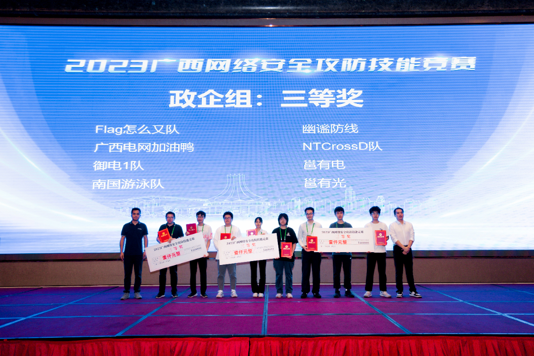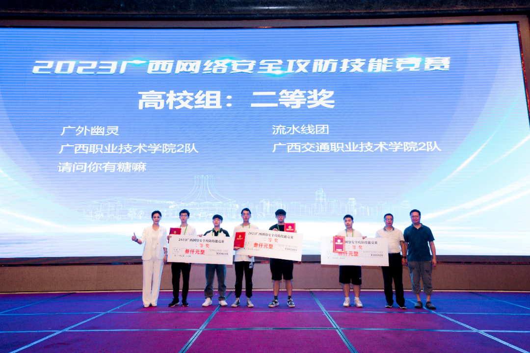 7月27日,由自治区党委网信办、教育厅、公安厅主办,广西交通职业技术学院承办,广西亚盛信息技术有限公司、绿盟科技集团股份有限公司协办的“2023年广西网络安全攻防技能竞赛”在南宁成功举行。本次比赛是为深入贯彻落实习近平总书记关于网络安全工作“四个坚持”的重要指示精神,旨在推动我区网络安全教育、技术、产业的融合发展,促进形成人才培养、技术创新与产业发展的良性生态。