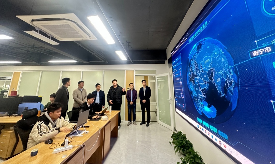 秦川书记一行参观了公司的企业文化墙和网络安全运营中心,总经理梁彬介绍了公司发展情况,网络安全运营中心主管覃家钰介绍了公司自研产品的功能应用,双方饶有兴致地展开交流。